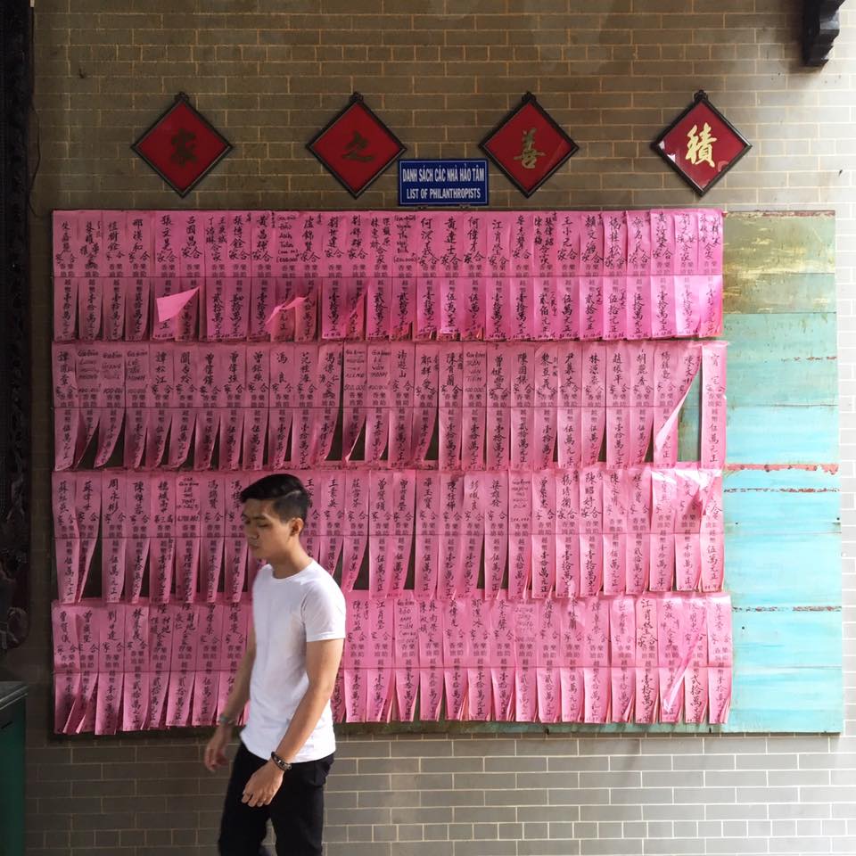 Tấm bảng được dán giấy cầu may mắn rực rỡ, cho bạn tha hồ có những bức ảnh đẹp