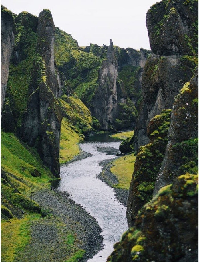 Du khách có thể đi bộ dọc hẻm núi Fjadrárgljúfur ở miền Nam Iceland.