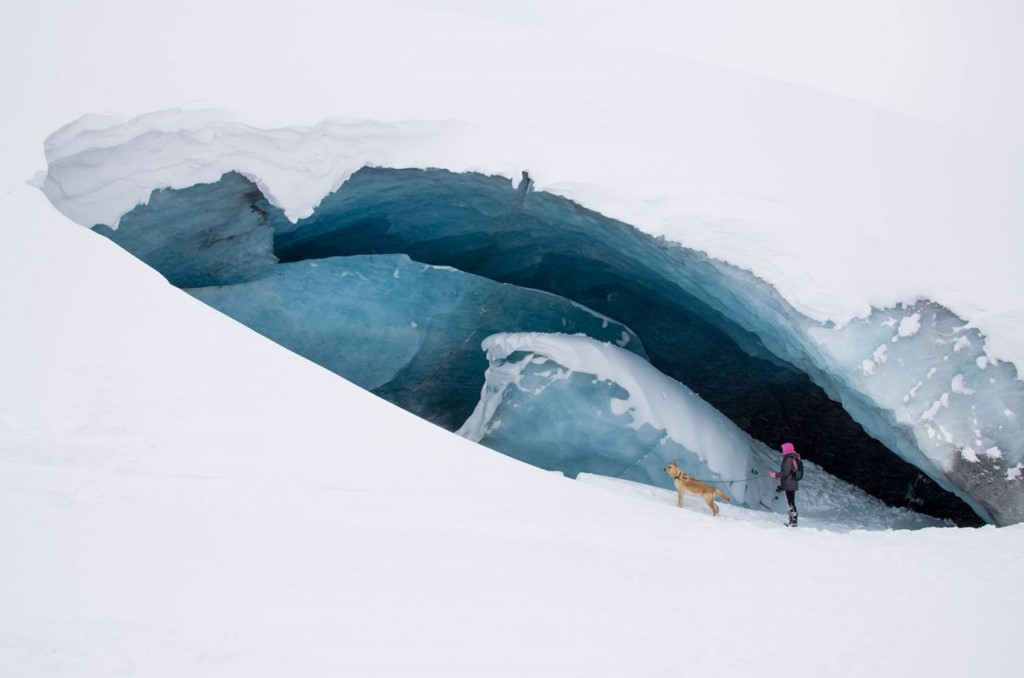 Một hang động hình thành tự nhiên trong sông băng Athabasca ở Banff - công viên quốc gia lâu đời nhất Canada.