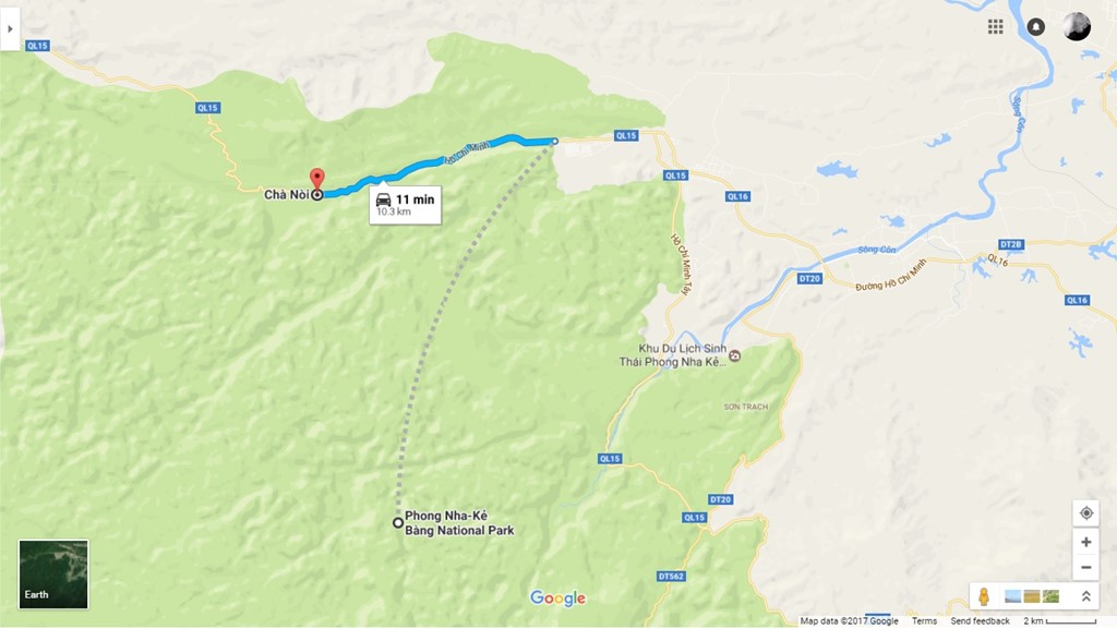 Từ vườn quốc gia Phong Nha Kẻ Bàng tới thung lũng Chà Nòi chỉ khoảng 10,3 km, đi thẳng hướng tây trên quốc lộ 15.