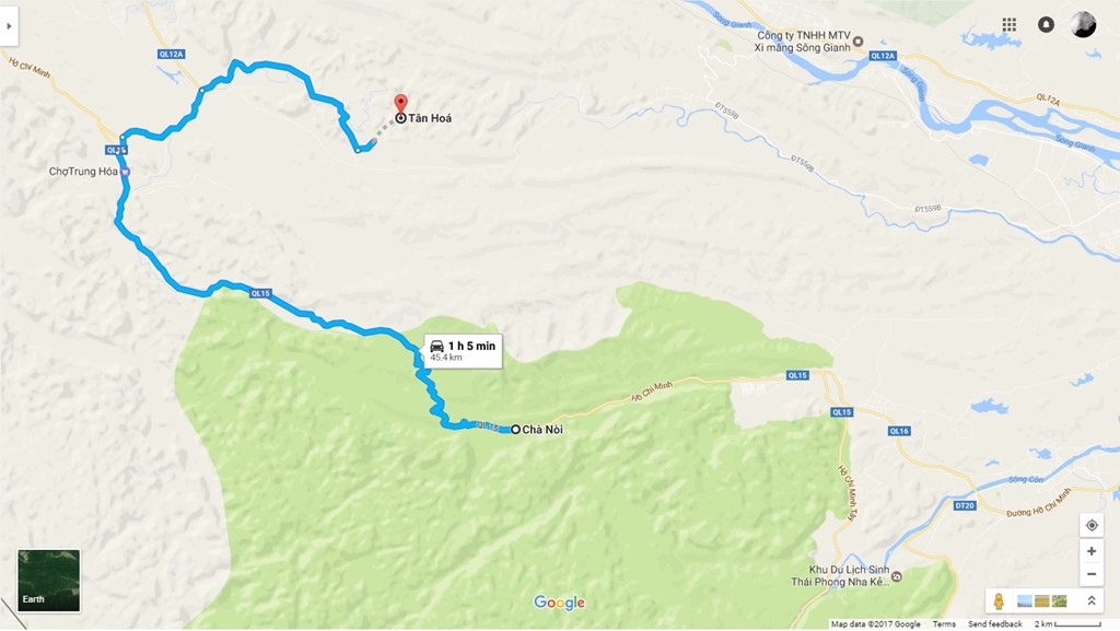 Quãng đường từ thung lũng Chà Nòi tới hang Chuột dài 45,4 km. Để tới được địa danh này, bạn đi theo quốc lộ 15 rồi rẽ phải vào quốc lộ 12A.