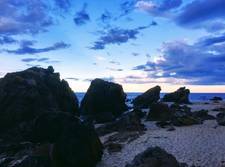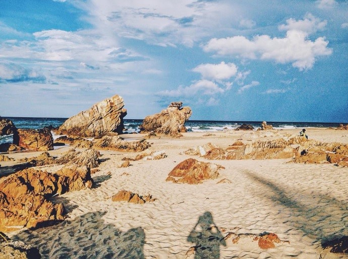 Những khối đá lớn nhỏ, hình thù đa dạng làm cho bãi biển thêm phần độc đáo, thích hợp chụp ảnh, vui chơi và đầm mình trong nước hiền hòa. Ảnh: Linhsea/Instagram.