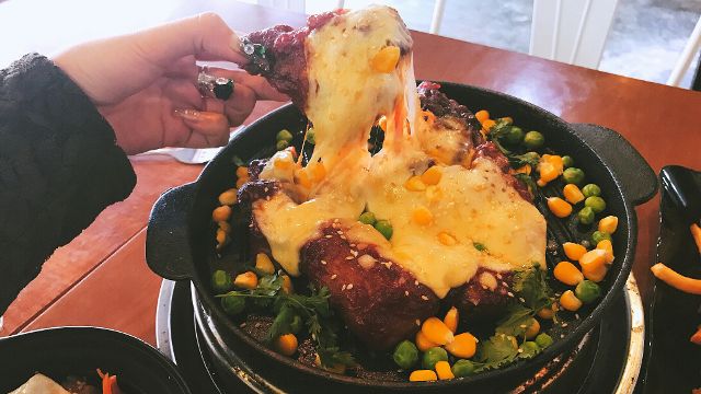Sườn nướng với ú ụ nhân phô mai vô cùng hấp dẫn.