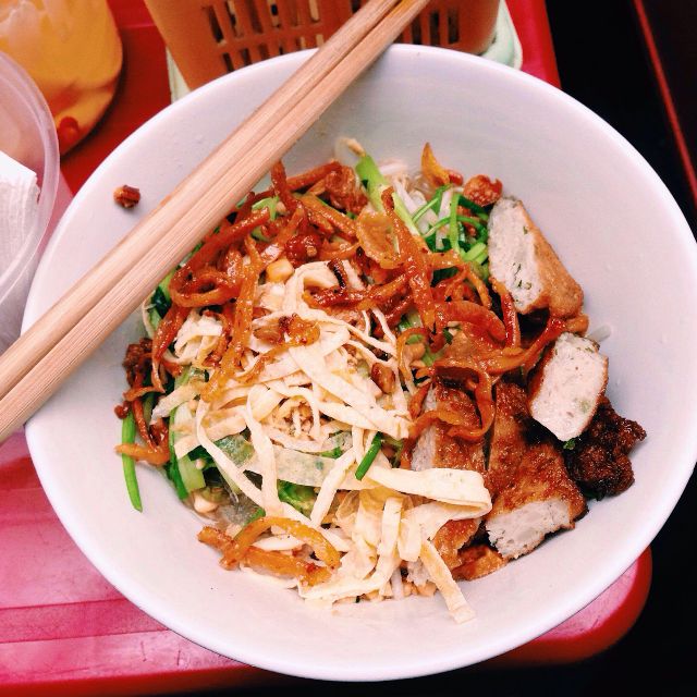Từ đồ ăn vặt bình dân đến đồ ăn “chanh sả”, từ món ngọt cho đến món mặt, khu Chùa Láng này đều có đủ cả cho bạn tha hồ mà lựa chọn luôn nhé. Bánh mì xiên nướng, bún đậu, hoa quả dầm… là một trong những món ăn “so hot” ở đây.