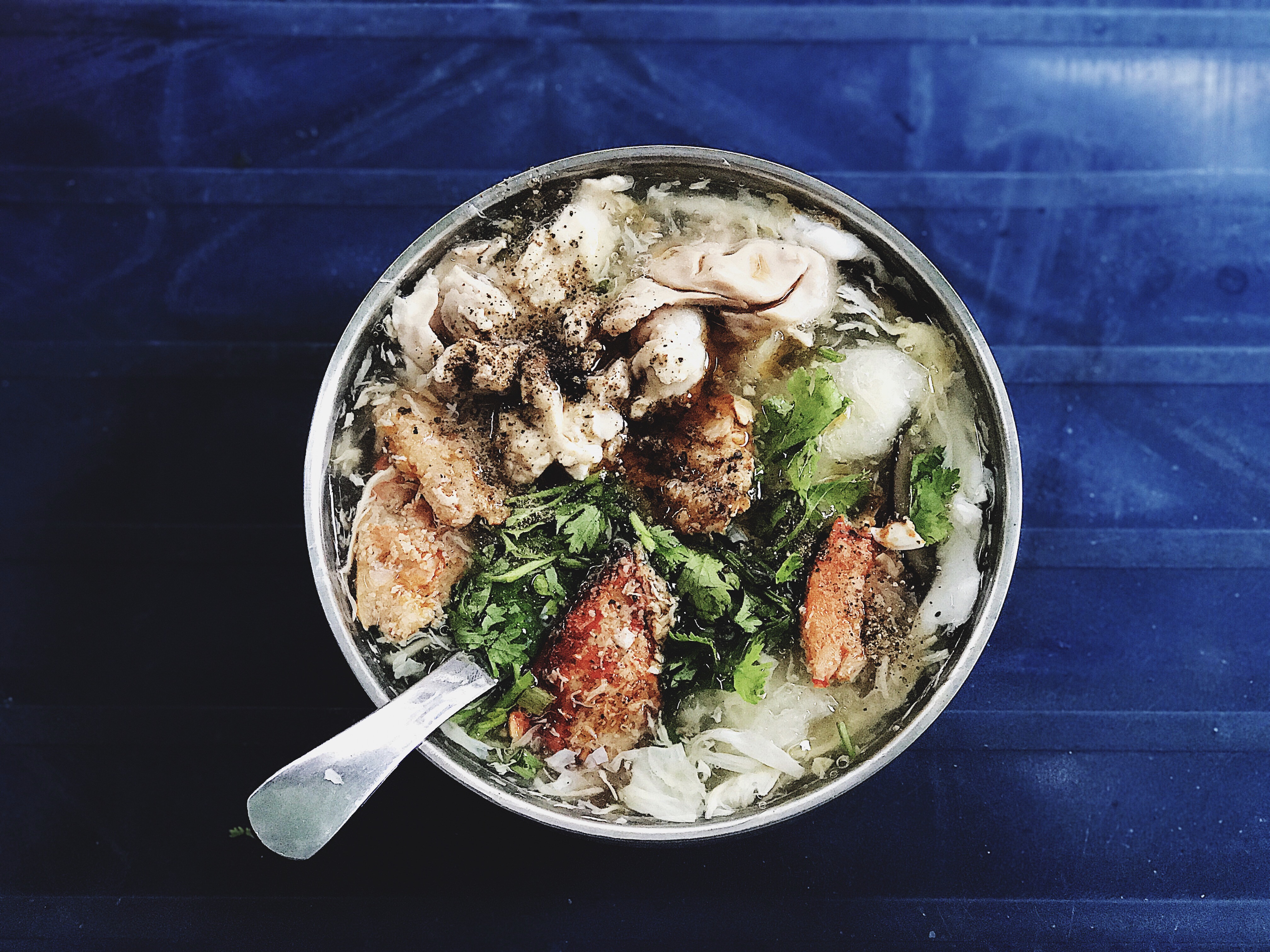 Không chỉ có bò lá lốt, há cảo trên góc đường Đề Thám phía sau trường cũng nổi tiếng không kém. Tuy không thể sánh với những nhà hàng Dim Sum cao cấp nhưng há cảo nơi đây cũng không hề thua kém bởi độ mềm, mịn của lớp bột bên ngoài và phần nhân chắc nịch bên trong. Có rất nhiều loại nhân kết hợp cùng bánh bao và hoành thánh đi kèm cho bạn lựa chọn. Chọn một phần 25k là dư sức cho teen cuối khoá tiếp tục những giờ học tăng cường nhé.