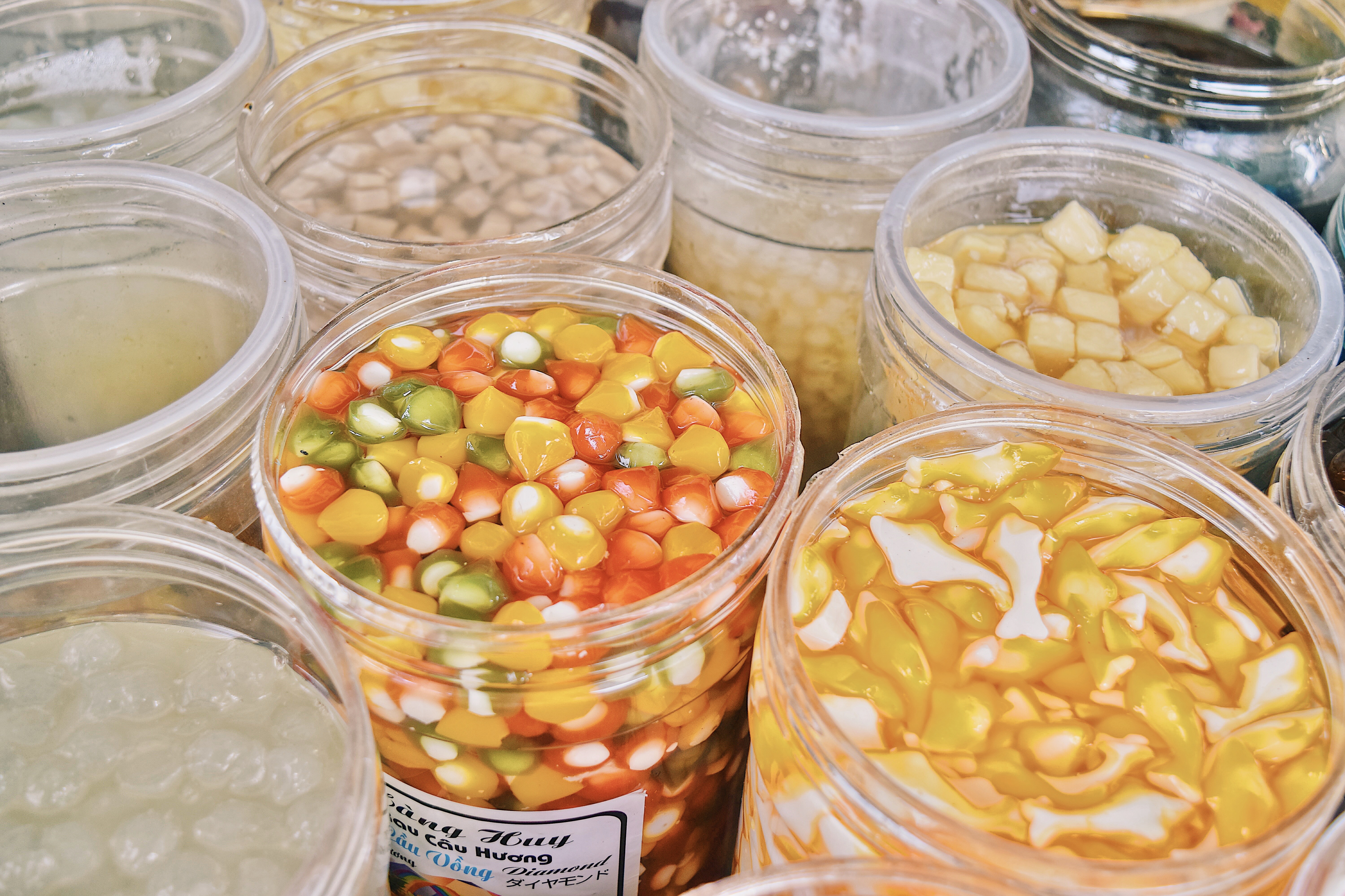 Dọc theo tuyến đường Ngô Thời Nhiệm, đối diện cổng trường, không khó để bắt gặp rừng trà sữa Cô Út hay Út Trang với vô số loại thạch đủ màu sặc sỡ thu hút người nhìn. Uống một ly 20k no cả buổi chiều luôn.
