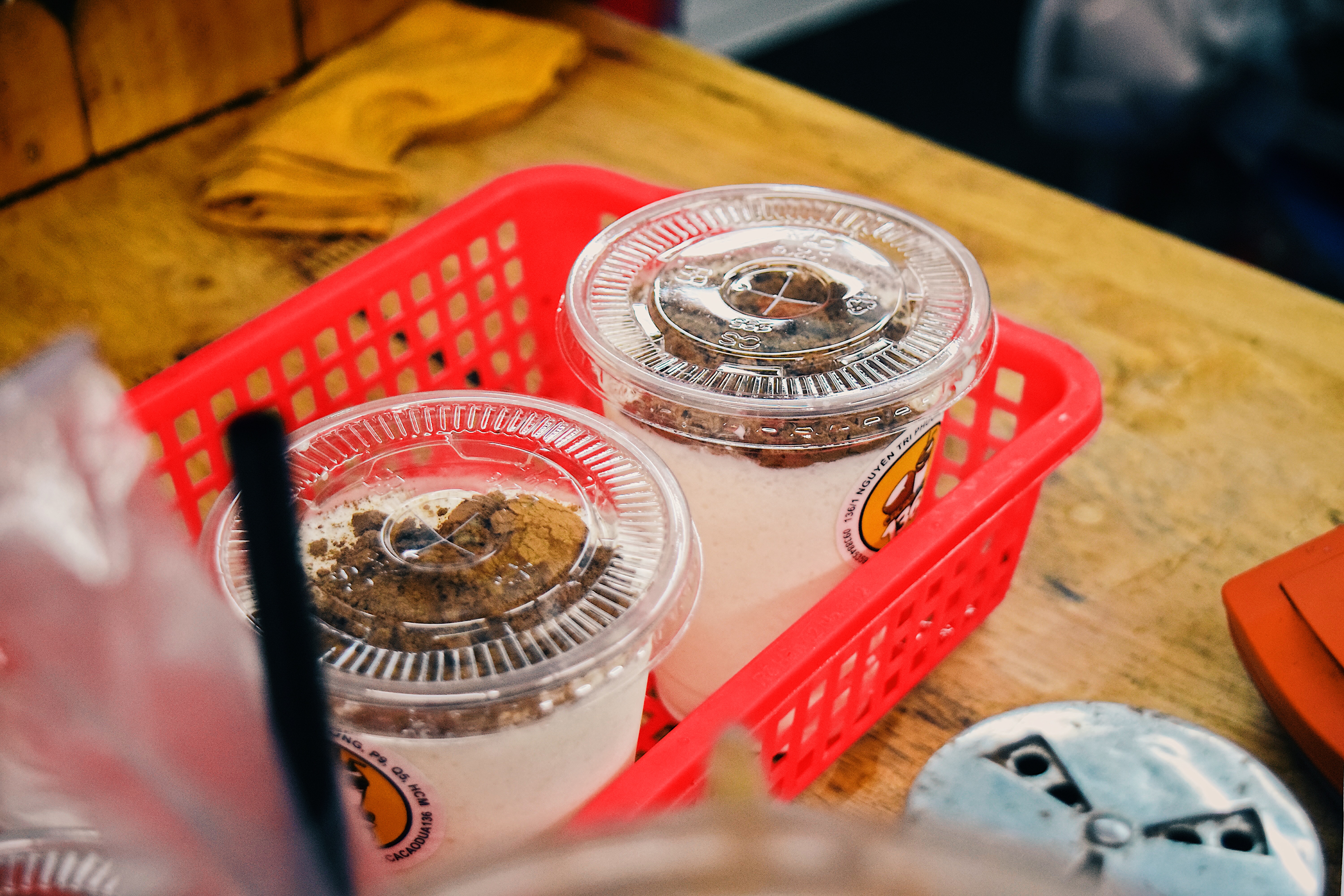 Cacao sữa dừa hẻm 136 Nguyễn Tri Phương nổi tiếng đã lâu với món ăn được mix độc lạ. Lớp sữa dừa béo ngậy lẫn cái dừa giòn sựt được rải bột cacao dày đặc bên trên nhưng chỉ 10k một ly. Cứ trống tiết hay tan giờ học là các bạn teen Trần Khai Nguyên lại ra đây vừa thưởng thức vừa tám chuyện. Không những thế quán còn có vô số đồ ăn vặt như chè, bánh flan hay sữa chua mít cho các bạn tha hồ lựa chọn nhé.