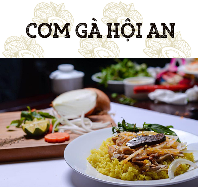 Người ta kháo tai nhau rằng ai đến Hội An mà không ăn cơm gà thì xem như chưa đến Hội An. Chẳng nói ngoa khi món ăn ấy đã trở thành một nét đặc trưng riêng biệt của nơi này. Cơm gà Hội An khác với những nơi khác ở cách chế biến thịt gà đúng chuẩn kiểu miền Trung. Tuy nhiên, có nơi chế biến với kiểu truyền thống quen thuộc là gà luộc loại thả vườn thì thịt mới chắc, vị đậm đà. Gà luộc vừa chín tới, để nguội và lọc lấy xương. Có nơi thì chế biến phần thịt được xé nhỏ, trộn đều với hành tây, rau răm và gia vị. Phần gà trộn không hề bị bở hay nát thịt, hương vị thơm dịu và cay nhẹ, ăn kèm đồ chua điểm thêm nét đậm đà khó quên. Phần cơm mang một màu vàng bắt mắt, vì gạo được ngâm với nghệ, có cả vị ngọt rất thanh do được nấu từ nước luộc gà. Có nhiều người vì quá yêu hương vị gần gũi này mà đã gọi hẳn một phần cơm để ăn riêng.
