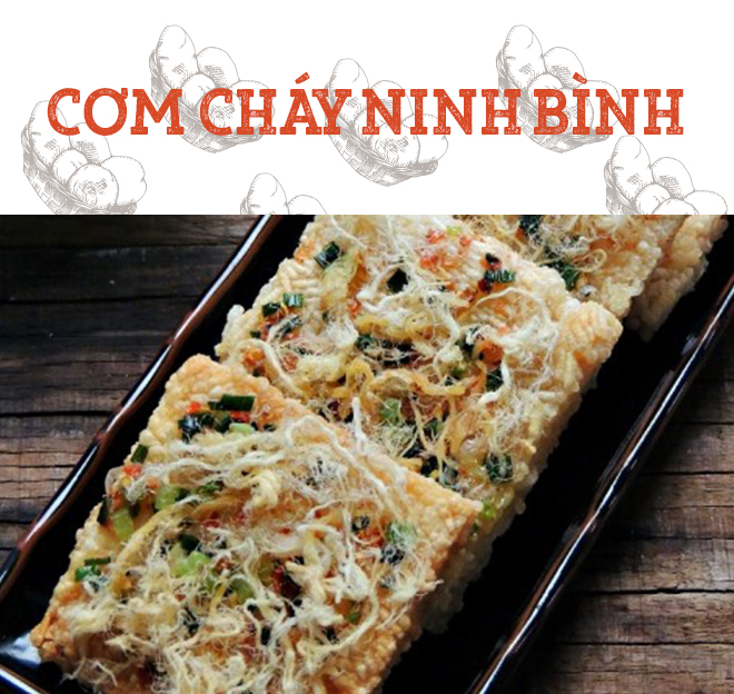 Cứ nhắc đến Ninh Bình, người ta lại nhớ về món cơm cháy ngon không nơi nào sánh bằng. Cơm cháy đóng vai trò như một món ăn truyền thống của mỗi gia đình, một thức quà quen thuộc mà bất cứ du khách nào cũng mua về rất nhiều. Vừa tiện lợi, dễ ăn, hương vị lại ngon khó cưỡng, cứ ăn lại chẳng muốn dừng.