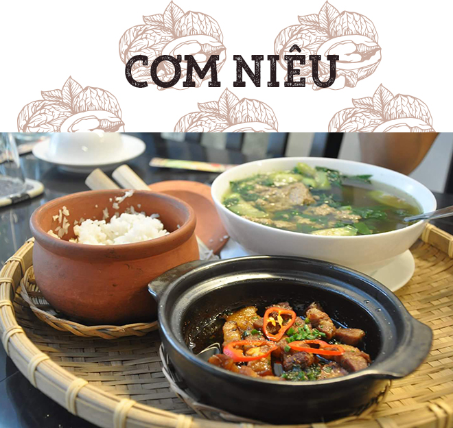 Từ những ngày xa xưa, ông bà ta đã luôn tin rằng hương vị mộc mạc, thơm ngon nhất sẽ được toát ra từ chiếc nồi đất cũ cha truyền con nối, chính vì vậy mà đã có rất nhiều món ăn được nấu bằng nồi niêu đã trở thành đặc sản nổi tiếng, một trong số đó chính là món cơm niêu thân thuộc. Cái niêu đất màu nâu sẫm, đáy nồi bị ám đen từ than, luôn có một đôi đũa cả gác bên cạnh.