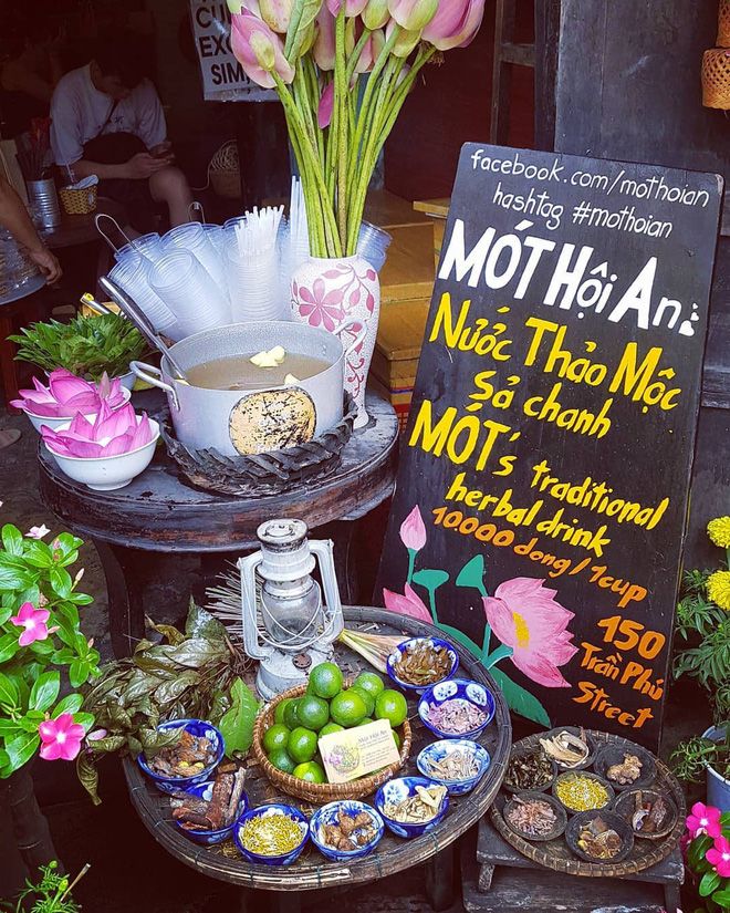 Sinh sau đẻ muộn nhưng giờ đây nước thảo mộc đã trở thành một món đồ uống đặc trưng của Hội An. Đúng như cái tên, nước thảo mộc được nấu từ rất nhiều thảo mộc, hoặc nấu từ chanh sả nên có tác dụng thanh nhiệt rất tốt. Trên hết, gánh nước thảo mộc lúc nào cũng được bày đẹp như một bài thơ nên hiếm ai vào phố cổ mà không ghé đến gánh hàng này.