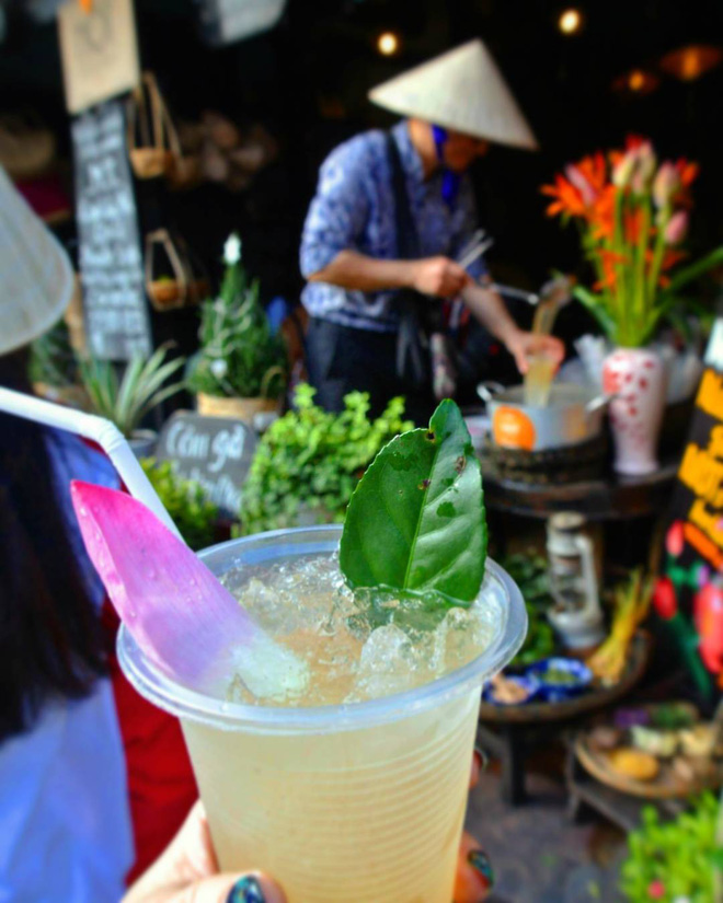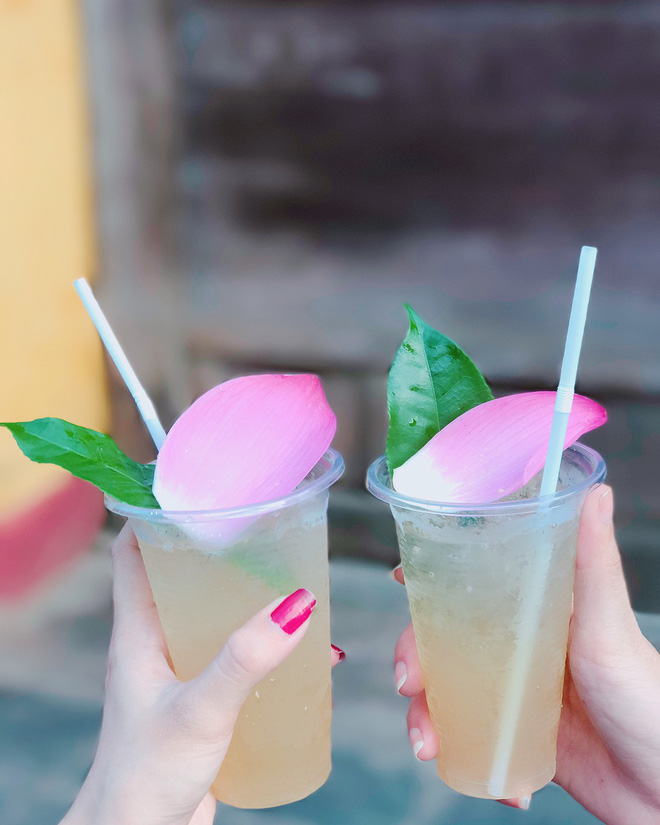 Ly nước thảo mộc thơm thảo thường được tranh trí bằng một lá trà, một cánh sen, đi kèm là đá lạnh để quên ngay đi cái nóng ở miền Trung. Vị nước thảo mộc có thể hợp với du khách hoặc không, nhưng không thể phủ nhận với giá chỉ 10 ngàn cho một ly nước thơm nức và ăn hình thế này thì ai cũng sẽ thích mê thôi.