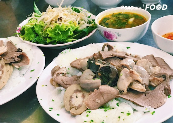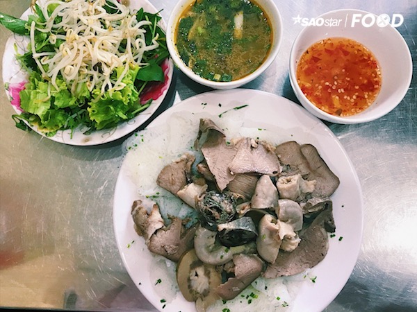 Gọi phần đây đủ, bạn sẽ ngất ngây với những món ăn đầy ắp được dọn ra. Dĩa bánh hỏi trắng mịn và thơm mùi dầu hành, lá hẹ được rải đều trên mặt bánh. Lòng heo đa dạng nào là tim, gan, cật, phèo,… được làm sạch bà luộc chín nên mang lại cái ngọt tự nhiên cho món. Cuộn tròn miếng bánh hỏi bên trong là một món lòng, chấm vào chén nước mắm đậm đà hương sắc. Bạn sẽ cảm nhận được trọn vẹn sự mộc mạc và thơm ngon tự nhiên của món ăn.