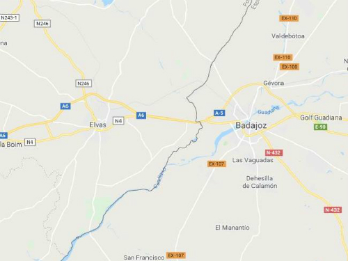 Badajoz, Tây Ban Nha tới Elvas, Bồ Đào Nha