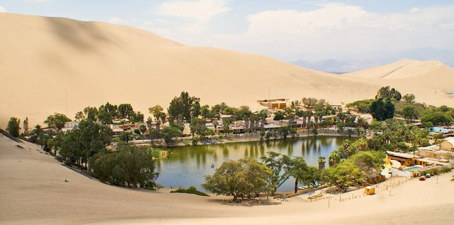 Huacachina là một ngôi làng nhỏ ở phía tây nam của Peru bao quanh bởi những cồn cát hùng vĩ. Ngôi làng được xây dựng xung quanh một ốc đảo nhỏ nhưng đẹp ngoạn mục. Nằm cách Lima năm giờ về phía nam, ngôi làng này có dân số khoảng 100 người nhưng lại là một điểm đến du lịch phổ biến, thu hút hàng chục ngàn khách mỗi năm. Vào những năm 1980, dòng nước bỗng ngừng chảy vào ốc đảo, đe dọa sự tồn tại của đầm. Tuy nhiên, đến năm 2015, nước bắt đầu được bơm vào đầm phá từ một trang trại gần đó, nâng mực nước lên hơn 3 mét