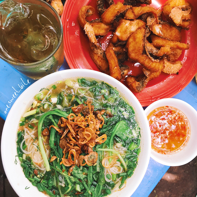 Bún cá ở đây khá với những quán ăn khác là cá và bún được ăn riêng với nhau và đi kèm đó là một bát nước chấm bên cạnh. Một suất bún ở đây là khoảng 30 nghìn đồng và bạn có thể no nê cả bữa trưa nhé. Ảnh: @one.sweet.bile