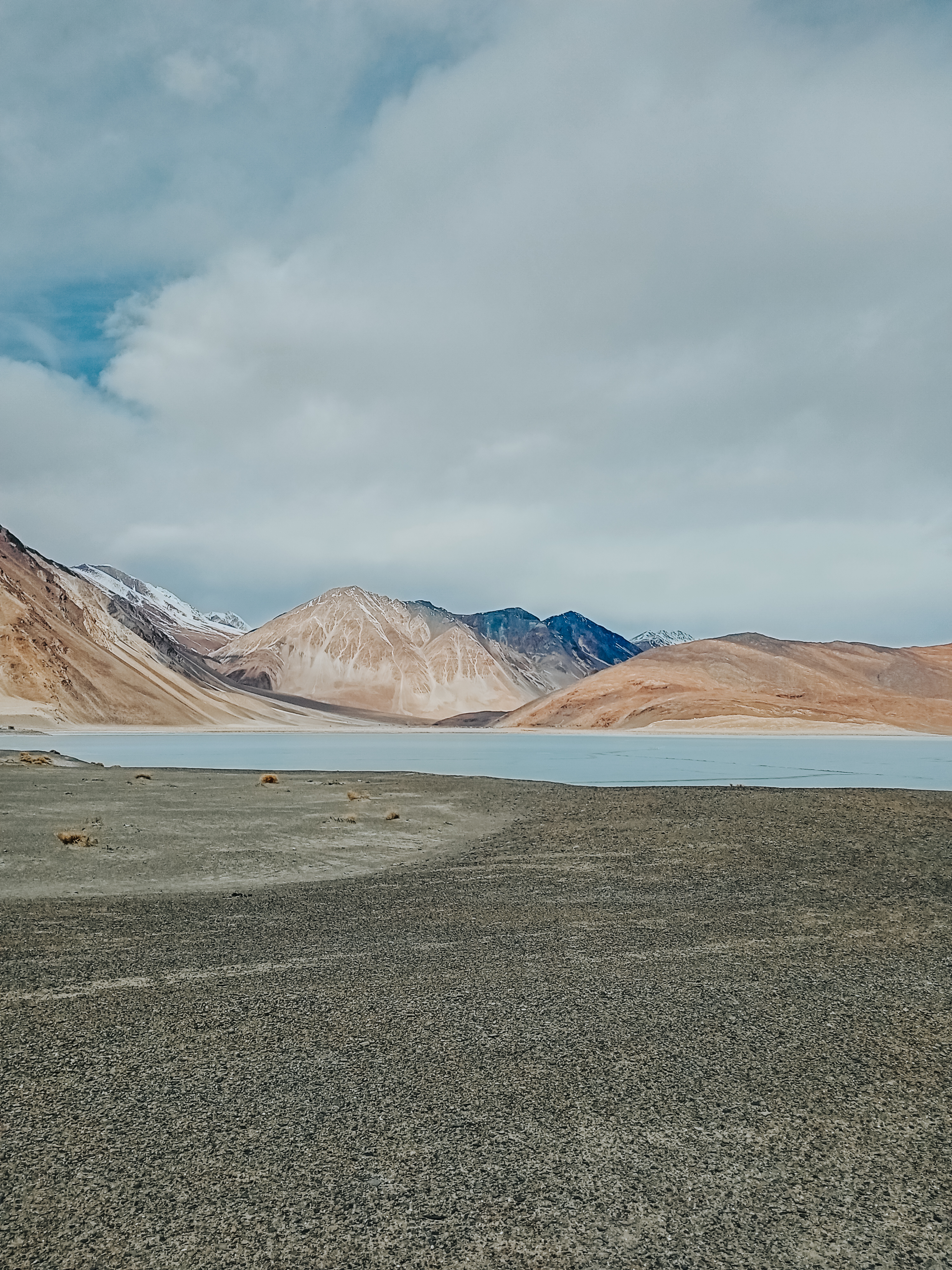 Nằm ở độ cao ngoạn mục 4.350m so với mực nước biển, hồ Pangong như một bức tranh tuyệt hảo. Hồ nằm ngạo nghễ giữa những dãy núi trùng điệp của dãy Himalaya, mang một sắc xanh mê hoặc bất cứ ai khi đến đây.