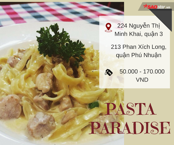 Pasta Paradise là một địa chỉ nổi tiếng lâu nay với những tín đồ yêu thích các món Tây - Âu. Ở đây được xem là “thiên đường của mì Ý”, bạn sẽ được trải nghiệm vô vàn hương vị của những đĩa mì, pasta được chế biến công phu và chất lượng.