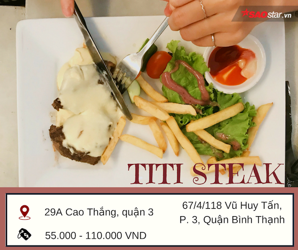 Nói về thực đơn của quán, Titi Steak tuy không phải là một nhà hàng đẳng cấp nhưng lại đa dạng và hầu như là phục vụ đủ các hương vị của một bữa tiệc món Tây. Chiếc menu đầy ắp sự lựa chọn, đi từ khai vị sẽ có những đĩa salad tươi mới với sốt mayonaise hay dầu giấm. Còn không, có thể chọn ăn kèm cùng cá ngừ hay cá hồi đậm đà trong các vị sốt.