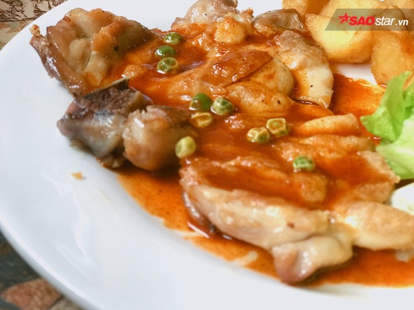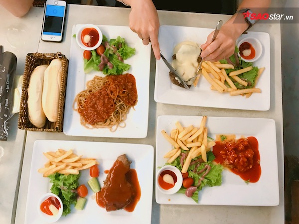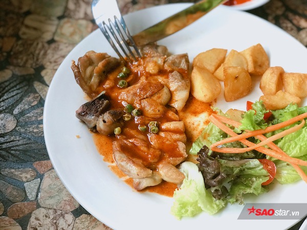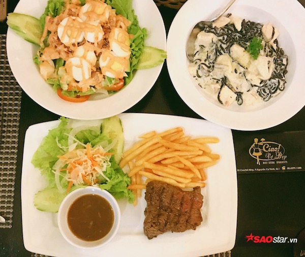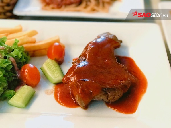 Món ăn ở quán cũng rất đa dạng, vẫn có các món mì spaghetti ăn no bụng và cả salad tráng miệng cho bữa ăn thêm tươi ngon. Đối với món steak, thịt gà mềm, độ dai ngọt hợp lí không gây ngấy mà trái lại khi ăn kèm cùng sốt lại vô cùng hấp dẫn. Vài miếng snack khoai tây, salad cho giòn giòn khuôn miệng.