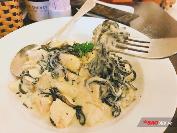 Đến quán, bạn hãy thử trải nghiệm sợi mì đen Squid Ink Spaghetti khá lạ lẫm nhưng lại mang đến hương vị độc đáo làm mới cho những món mì ý quen thuôc. Phần sốt kem tươi tiếp thêm vị béo ngậy và thơm lừng vị sữa giúp cho món ăn vô cùng lôi cuốn khẩu vị.