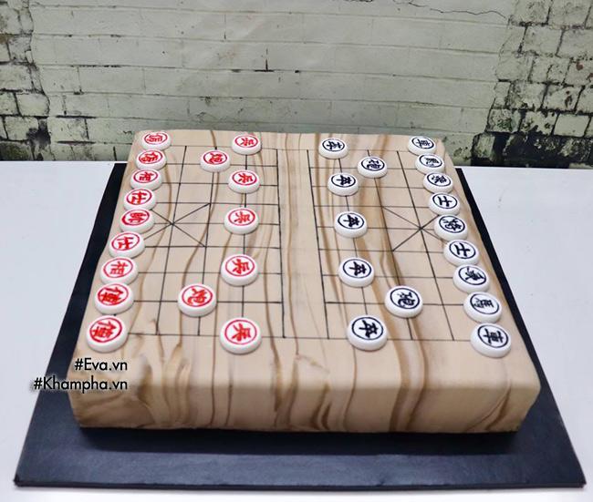 Về cơ bản, chiếc bánh có cốt butter cake nhân kem bơ và được bọc, trang trí bằng fondant. Vì bận chăm con nên chị mất 2 ngày mới xong chiếc bánh này. Khi chị đưa tặng bố, ông rất vui và ngạc nhiên vì chiếc bánh quá giống thật và nó không chỉ là chiếc bánh kem mà còn có thể chơi cờ được nữa. “Tuy nhiên hôm đó thời gian gấp quá nên bố mình chưa kịp giải thế cờ”, chị nói.