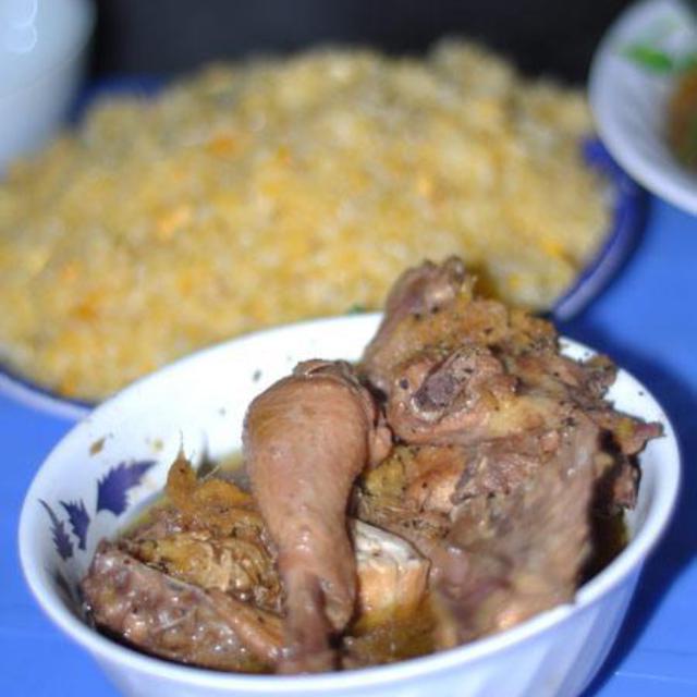 Gà rang quán này khá đậm đà, một phần gà rang luôn gồm 1 đùi, 1 cái cánh, vài miếng thịt lườn, ngập trong thứ nước thịt sanh sánh. Ngoài ra, khách có thể gọi thêm đĩa dưa muối hay bát canh chua nóng hổi để ăn đỡ ngấy.