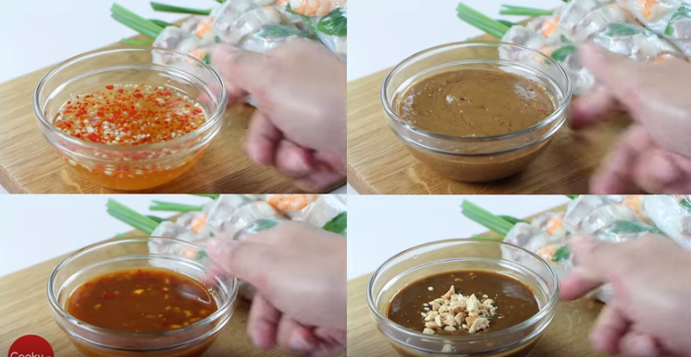 Tuy nhiên, để chế ra được bát nước chấm ngon không phải ai cũng làm được. Tương hột, đậu trắng, gan heo xay nhuyễn, sau đó xào lên, nêm gia vị tỏi băm, sả băm, nước dừa với một tỉ lệ thích hợp, thêm chút bơ đậu phộng làm tăng độ sánh của bát nước chấm. Chén nước chấm có vị chua, cay, mặn, ngọt hài hòa, sanh sánh và thơm nồng mùi bơ đậu phộng. Một hương vị tổng hợp làm dậy lên độ ngon của món gỏi cuốn bình dị.