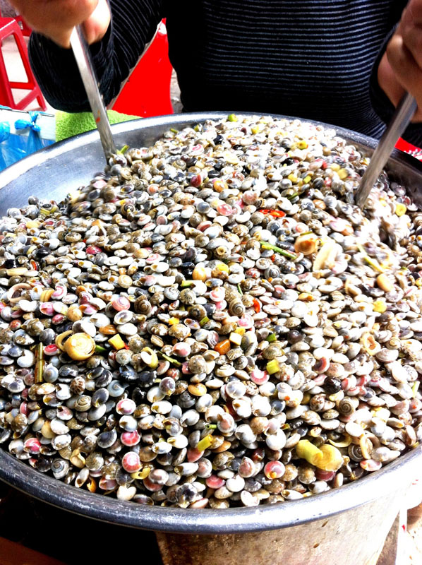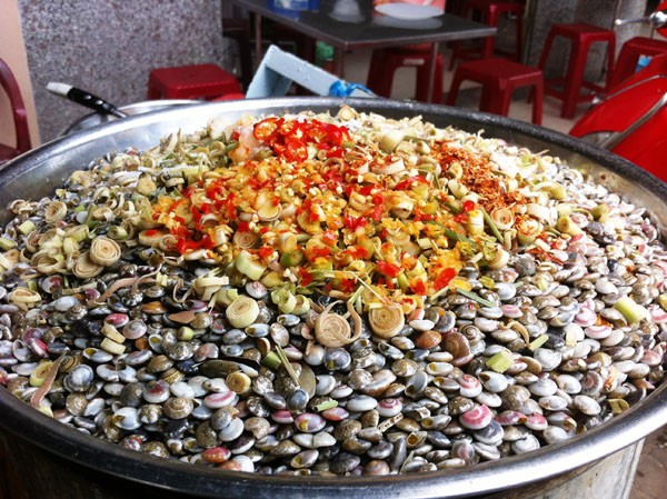Những thau ốc được nêm nếm đầy đủ gia vị tạo nên một mùi thơm riêng biệt.