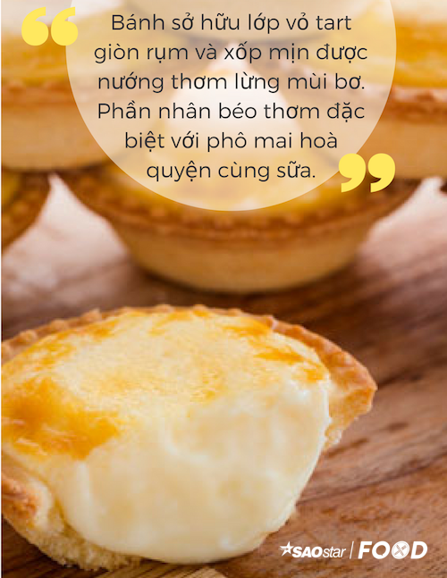 Chỉ cần cắt nhẹ vào bánh, lớp nhân lỏng sẽ tan chảy khiến bạn phải thèm thuồng. Nếu bạn là một tín đồ của phô mai béo ngậy thì sẽ là thiếu sót nếu bỏ lỡ qua những chiếc bánh tart thơm lừng này. Tuy không gây sốt như những “người anh em” còn lại nhưng cheese tart luôn âm thầm chiếm lĩnh vị giác của những ai thích cái beo béo, thơm thơm đặc trưng của phô mai.