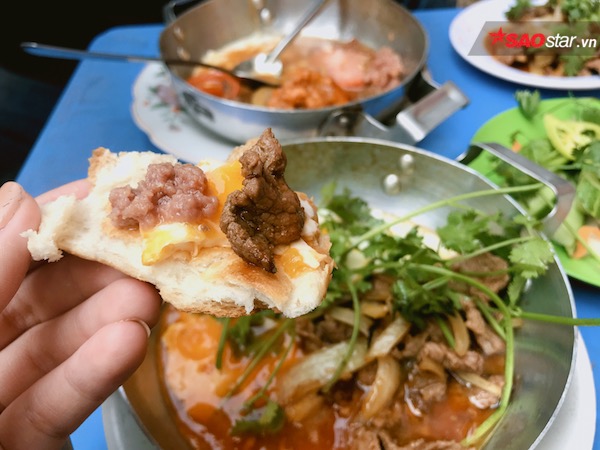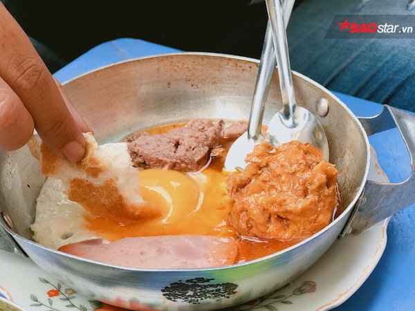 Chấm miếng bánh giòn giòn, kẹp thêm trứng beo béo, rồi pate, xíu mại hài hoà. Như thế đã thoả mãn được cơn thèm chút gì đó dân dã nhưng không kém phần bắt vị.