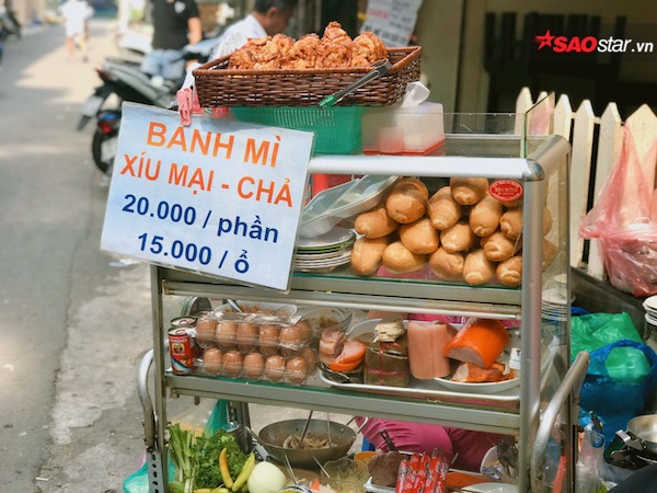 Phần ăn đơn giản gồm trứng ốp la, xíu mại, pate và chả lụa. Tất cả bày trí tươm tất trên chiếc chảo nhỏ. Chiếc bánh mì giòn rụm và nóng hổi tiếp thêm độ thơm ngon cho món ăn. Xíu mại được nêm vừa miệng, chắc thịt nên khi ăn sẽ không bị tách ra.