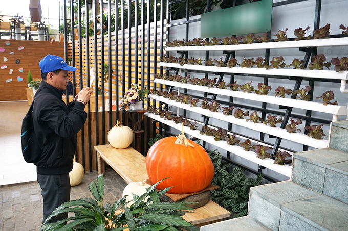 Nếu không gian chính là nơi khách thưởng thức đồ uống thì khu vực trồng rau, trái cây bằng phương pháp thủy canh, khí canh dành cho những ai muốn tìm hiểu về hoạt động này.