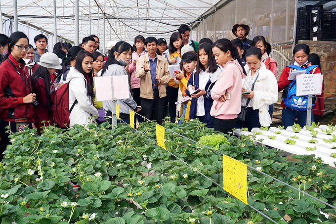 Nhiều đoàn sinh viên học ngành nông nghiệp, công nghệ sinh học của Đại học Đà Lạt, Đại học Cần Thơ… còn đến đây để kiến tập, tìm hiểu thực tế về ứng dụng công nghệ cao trong sản xuất nông nghiệp.
