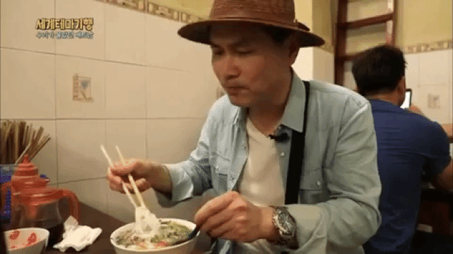 Kiên nhẫn xếp hàng và gọi cho mình một bát phở đầy đặn cùng với quẩy ăn kèm, giáo sư Choi Ho Lim thích thú thưởng thức và trò chuyện với người dân thủ đô. Ông chia sẻ rằng, mùi hương của nước dùng thực sự tuyệt vời, xương bò được ninh kĩ mang lại cảm giác rất đậm đà và thơm ngon. Đặc biệt, trong những quán phở truyền thống ông từng nếm thử của Hà Nội, hương vị phở Bát Đàn được ông khen ngợi là có mùi vị ngon nhất.