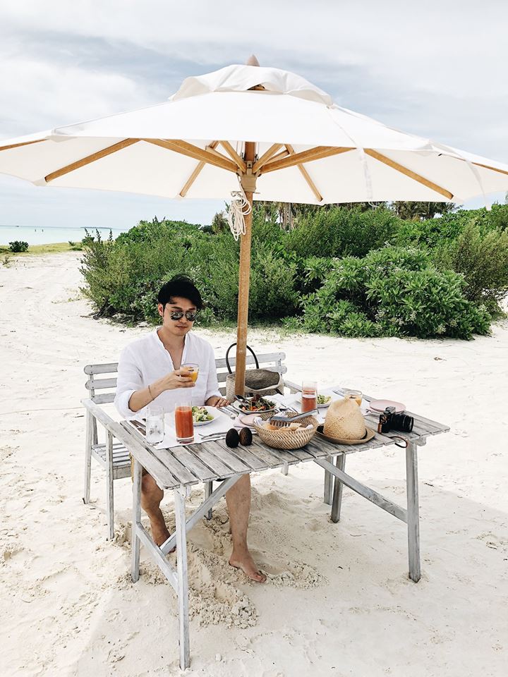 Để tận hưởng hết vẻ đẹp của vùng đất anh, anh chàng đã chọn một resort cực kỳ ”chanh sả”, chỉ vi “lỡ dính bùa yêu khi thấy mấy tấm hình cầu tuột, tuột từ phòng tuột thẳng xuống biển. Ngoài ra, còn có thể trải nghiệm thuỷ phi cơ ngắm đất nước Maldives từ trên mây cũng như khu resort này có thiết kế nội thất đúng kiểu Scandanavian và luôn được đánh giá cao”.