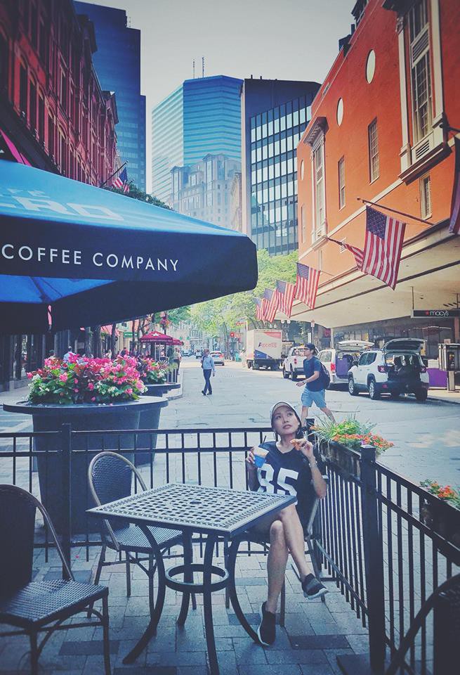 Mình ở Boston 3 ngày, sống những ngày khá êm đềm để bắt nhịp lối sống Mỹ trước khi bắt đầu chuyến phiêu lưu. Nhờ kết nối của cô bạn thân, mình ở homestay nhà người đồng nghiệp của cô, một biệt thự nằm trên đồi luôn lộng gió, từ đó phóng tầm mắt ra bao la bang Massachussett. Sáng sáng dậy bắt tàu điện lên downtown, ghé Starbucks mua cafe nóng, bánh croissant, ra giữa phố ngồi ngắm người ta đi lại. Rồi đi loanh quanh trên phố, mua sắm, thăm thú, mua vé đi city tour cả trên bờ lẫn dưới sông (70$).