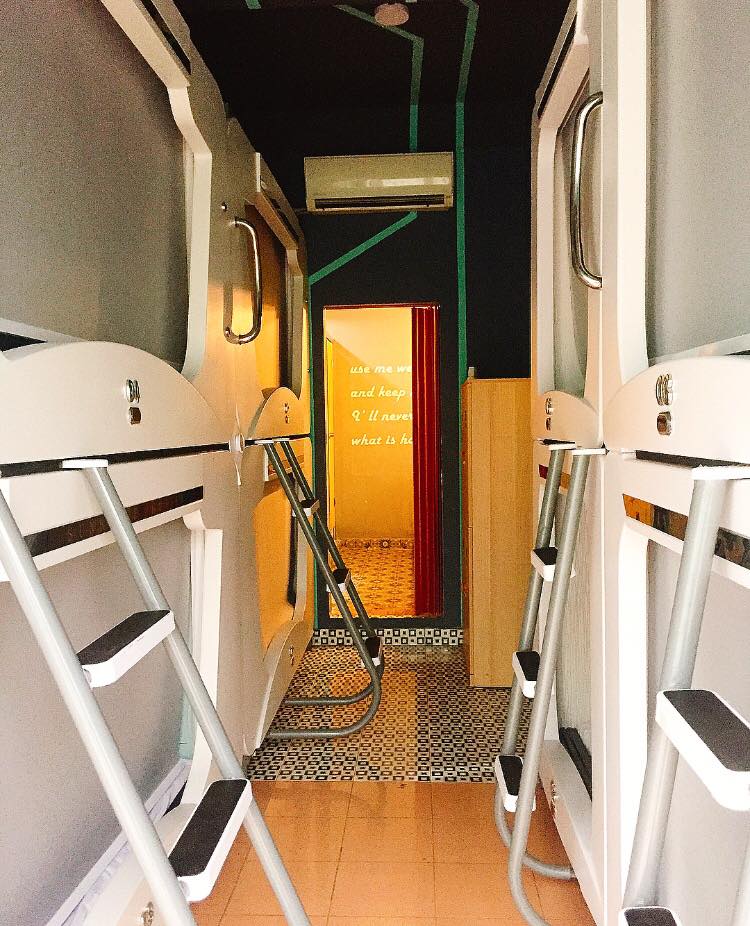 Mỗi tầng có 8 giường kén nhộng với thiết kế hiện đại và nhiều tiện ích. Giường được thiết kế êm ái và được đánh giá cao vì sạch sẽ. Ngoài ra, những tiện ích khác mà bất cứ bạn nào cũng muốn tìm kiếm khi đi du lịch như ổ sạc, Wi-fi, đèn chiếu sáng, móc quần áo… đều có sẵn ở bên trong tổ kén.