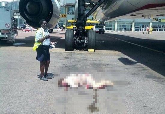 Hình ảnh từ vụ việc nữ tiếp viên bị ngã tại sân bay quốc tế Entebbe, Uganda. Ảnh: Wangyi