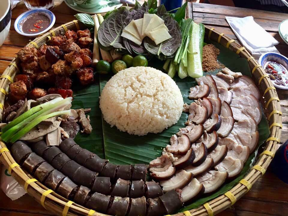 Nếu muốn thử đổi vị với những món của núi rừng Tây Bắc thì hãy nhớ lưu ngay cái tên heo mẹt để lôi kéo đám bạn đi cùng. Một mẹt heo ngồn ngộn với tận 7 món, nào là heo nướng, heo xào lăn, dồi trường chiên, bắp thịt luộc, lòng heo, canh huyết, măng sườn… Món sẽ ăn cùng xôi và một hương vị độc đáo chính là nhựa mận.