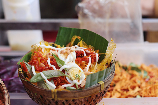Bún đậu mắm tôm từ khi “Nam tiến” đã được nhiều bạn trẻ yêu thích không chỉ vì hương vị đặc sắc mà còn là sự trù phú của các món ăn kèm. Mỗi mẹt bún đậu quyến rũ thực khách trong vô vàn sắc hương của đậu phụ, thịt luộc, chả cốm, nem chua rán… Thêm vào đó là chút rau xanh, dưa leo giòn giòn để cân bằng vị giác.