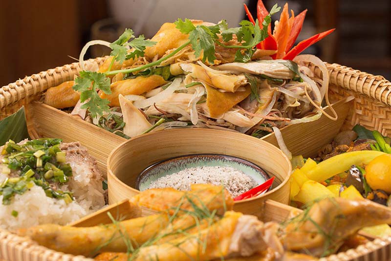 Gà lên mâm là tổng hợp của vô vàn hương vị được chế biến từ gà khiến ai cũng phải ngất ngây. Ấn tượng đầu tiên chắc chắn bạn sẽ choáng với một mâm gà to đùng, đầy ắp nào là gà nướng, gà luộc, gỏi gà… Những miếng gà được chặt vừa vặn, lớp da ngoài bóng mỡ, thịt thì thơm mềm hấp dẫn.