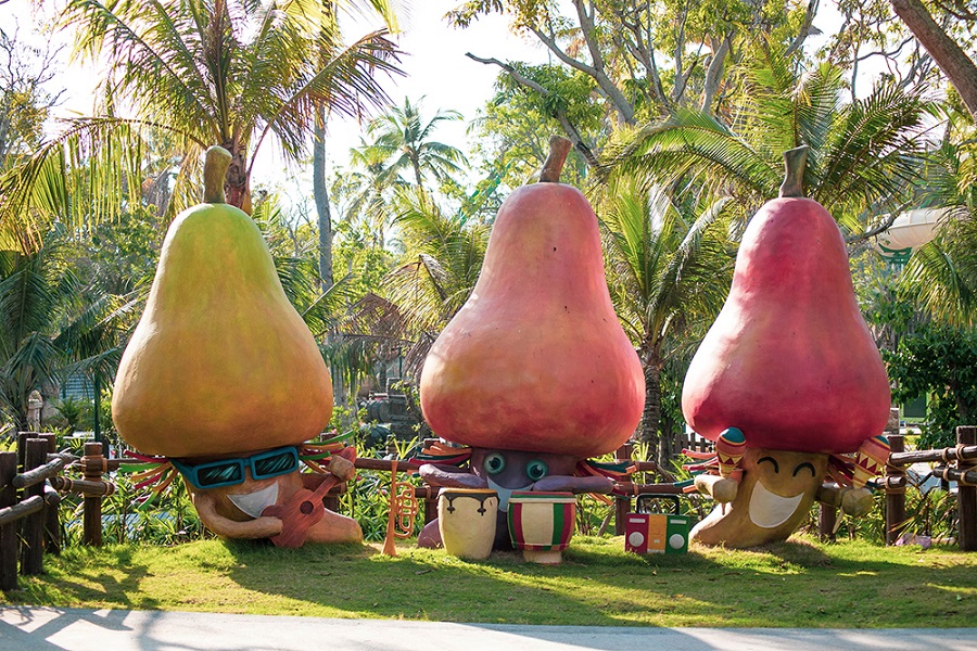 Ở khu vực “Quái thú rừng xanh”, các nhà thám hiểm sẽ không khỏi giật mình khi bắt gặp những bức tượng trăn nằm vắt vẻo trên cây, những con cá sấu khổng lồ đang há miệng chờ mồi, hay cái lườm đầy ẩn ý của chú tinh tinh cao lớn…