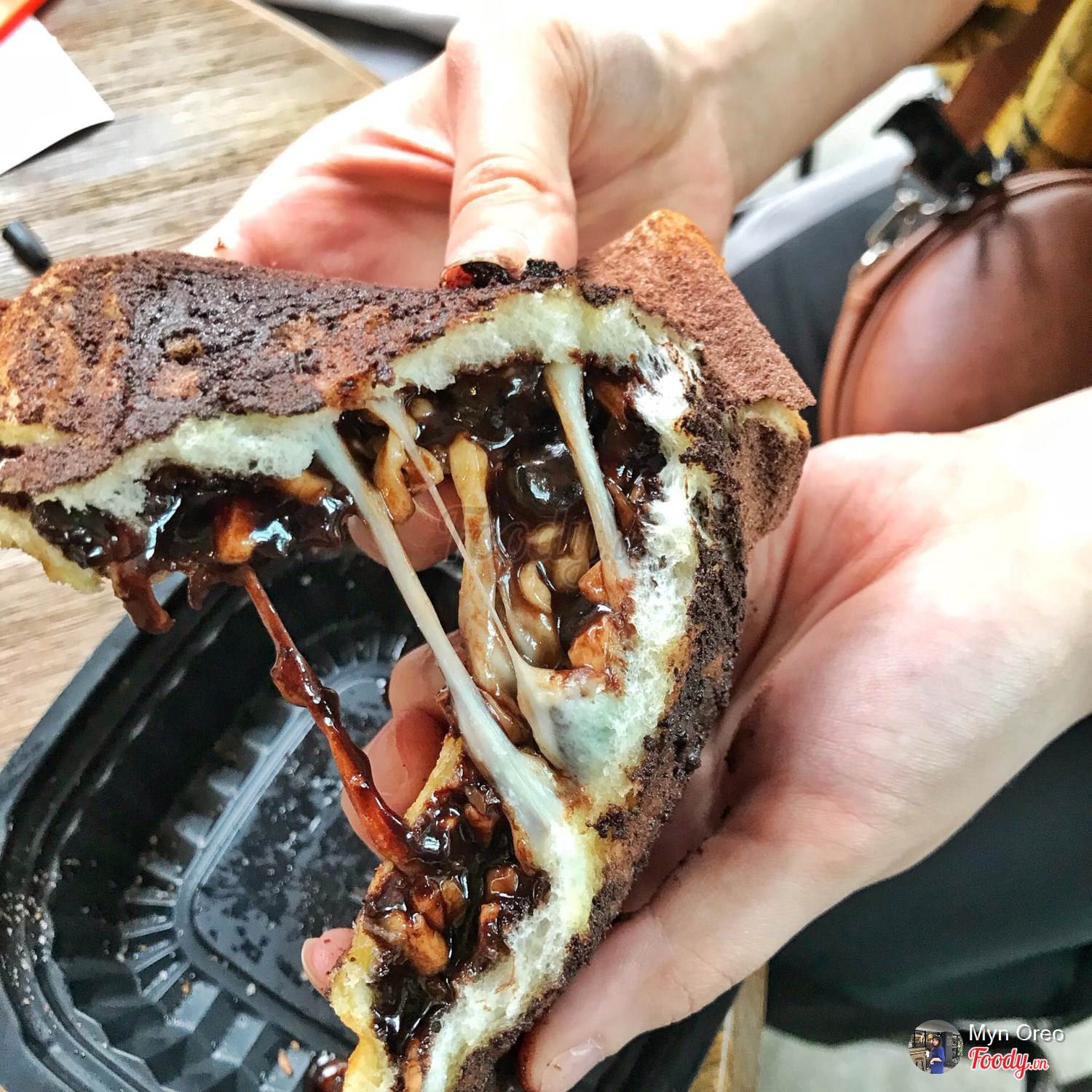 Bánh sandwich “ngập ngụa” phô mai, tân châu và socola. Ảnh Foody