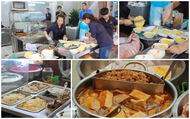 Quầy ăn uống sạch sẽ, đồ ăn đa dạng.