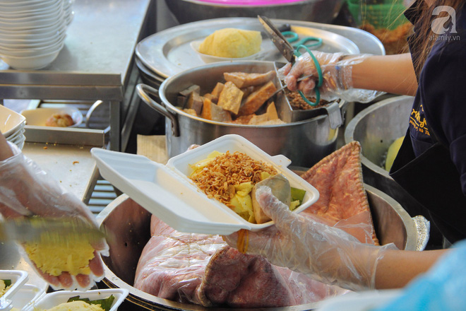 Theo quan sát, các loại xôi và đồ ăn kèm ở đây vẫn đa dạng như trước khi đóng cửa, chả, giò, thịt thái miếng to, các loại đồ ăn được bày gọn gàng, sạch sẽ ở từng khay riêng. Không đông khách, cộng với dàn nhân viên nhanh nhẹn, nhiệt tình nên gần như ngay khi gọi đồ, chúng tôi cũng như các thực khách khác đã có ngay bát xôi theo yêu cầu.