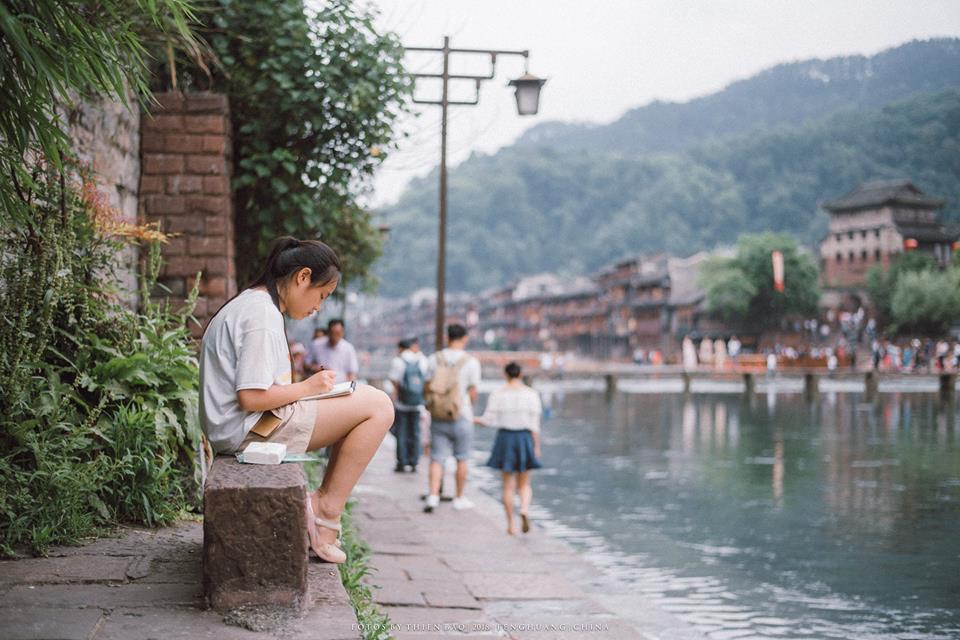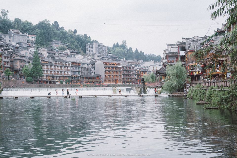 ”Mình bước chân xuống những bậc thang thì được xuôi dòng trên con sông Đà Giang chảy ngang Phượng Hoàng Trấn. Sự êm ả và mạnh mẽ cứ đan xen lấy nhau. Cảm giác như lạc vào một thế giới chỉ thấy trong những cuốn phim Trung Quốc ngày xưa. Con người, bản sắc, cảnh vật, công trình và khách du lịch - mọi thứ cứ đẹp như cái kết của bộ phim tuyệt vời nhất mà mình từng xem vậy.”
