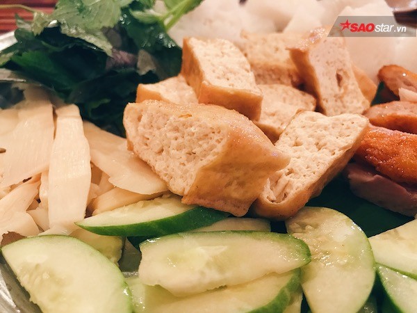 Tuy cũng giống các quán khác về thành phần món ăn nhưng quán ăn này lại tạo ấn tượng ở hương vị và chất lượng. Thịt đùi dày dặn và ngọt thịt kèm theo miếng chả cốm dai dai thơm thơm. Đậu hũ được áo lớp vỏ bên ngoài giòn rụm nhưng bên trong phần thịt là đầy đặn và béo thơm.