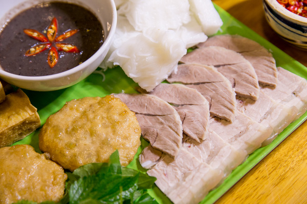 Phần thịt luộc được quán lựa chọn kĩ càng, đó chính là phần bắp to tròn giao hoà cân đối giữa vị ngọt bùi của thịt cùng lớp da beo béo, một chút gân giòn dai tiếp thêm hương vị.