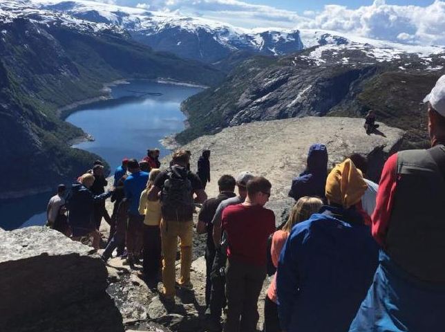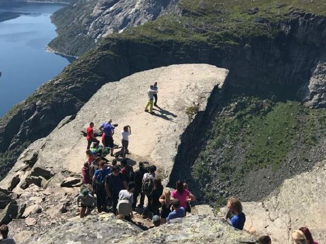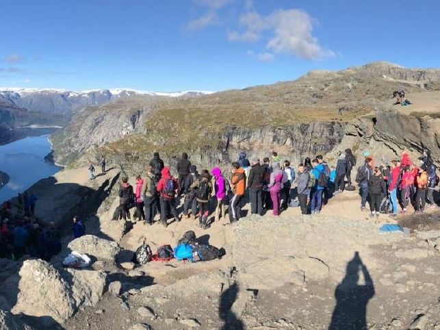 Những bức ảnh hậu trường ở Trolltunga, được chia sẻ trực tuyến bởi du khách, cho thấy bạn sẽ chỉ là một người trong đám đông trốn sau camera và xếp hàng giờ để có được một phút “tỏa sáng”.